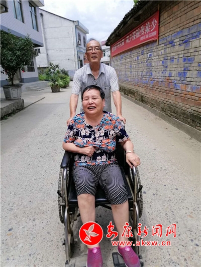 只要遇到好天氣,張業(yè)印就會(huì)用輪椅推著妻子到村部暢亮的大院巴上曬太陽(yáng),或一起到社區(qū)里鄰里之間串個(gè)門,一起聊家常;有時(shí)還會(huì)推著輪椅遠(yuǎn)到陜南民俗村第一村的魯家大院轉(zhuǎn)一轉(zhuǎn),讓妻子始終保持著愉悅的好心情。