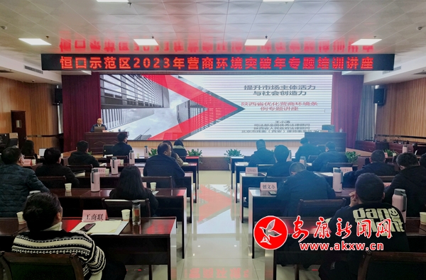 本網(wǎng)訊(通訊員 楊亮 楊繼焮)2月3日,恒口示范區(qū)經(jīng)發(fā)局舉辦了2023年?duì)I商環(huán)境突破年專題培訓(xùn)講座,旨在全面落實(shí)省委、省政府“營(yíng)商環(huán)境突破年”工作部署,進(jìn)一步優(yōu)化提升恒口營(yíng)商環(huán)境工作。邀請(qǐng)北京市煒衡(西安)律師事務(wù)所主任王小濤主講,全區(qū)各部門(mén)、稅務(wù)、水電氣、通信運(yùn)營(yíng)商等60余人參加。