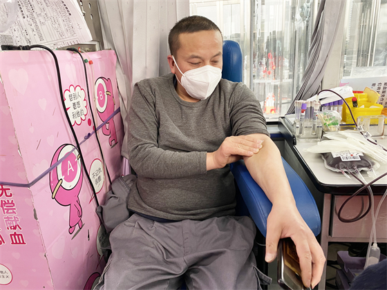 酒店廚師長段斌已經(jīng)是第五次進行無償獻血了,他說,希望大家在身體條件允許的情況下,捐獻熱血、溫暖他人。