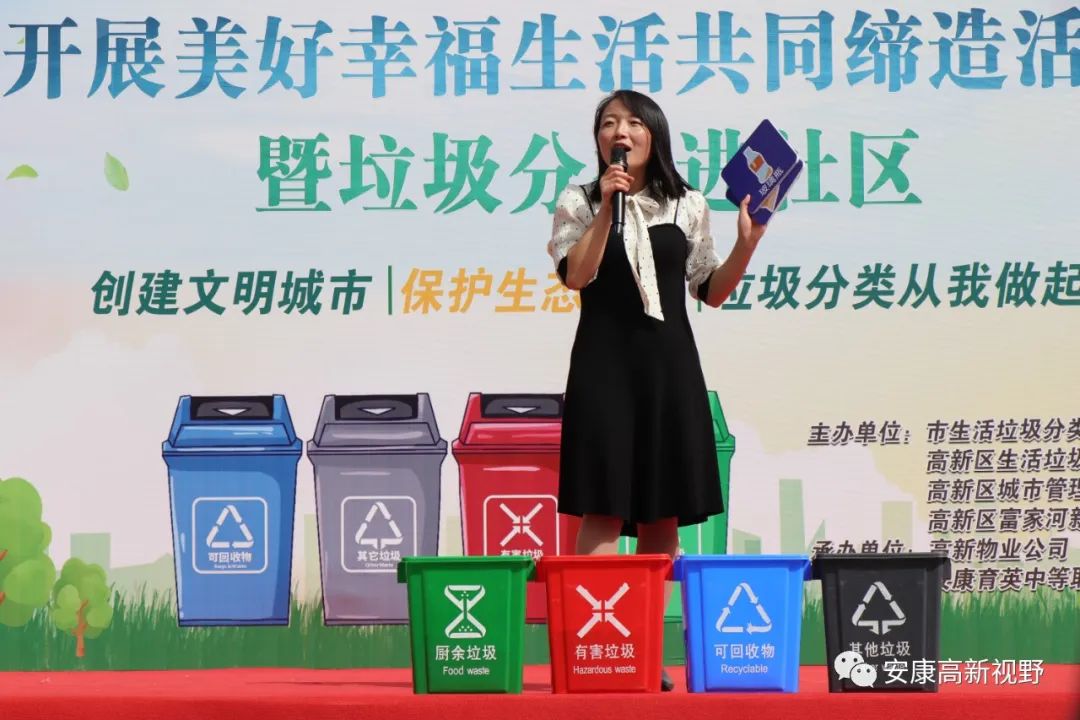 4月7日,由市生活垃圾分類辦、安康高新區(qū)城市管理執(zhí)法局、高新區(qū)生活垃圾分類辦和富家河新城黨委主辦,高新物業(yè)公司和安康育英中等職業(yè)學(xué)校承辦的“美好環(huán)境與幸福生活共同締造”暨生活垃圾分類宣傳進(jìn)社區(qū)活動在富家河社區(qū)舉行。