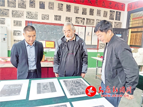 指導老師對瀛湖小學學生版畫進行點評。 宋安平 攝