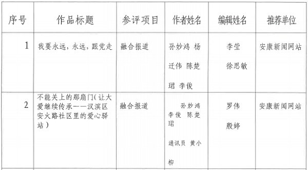 按照省記協(xié)要求,特將推薦參評(píng)2023年度陜西新聞獎(jiǎng)融合報(bào)道初評(píng)的作品予以公示。公示期為2024年1月16日至1月22日,在此期間內(nèi)如有異議請(qǐng)向新聞管理部反饋。報(bào)送作品如下:?