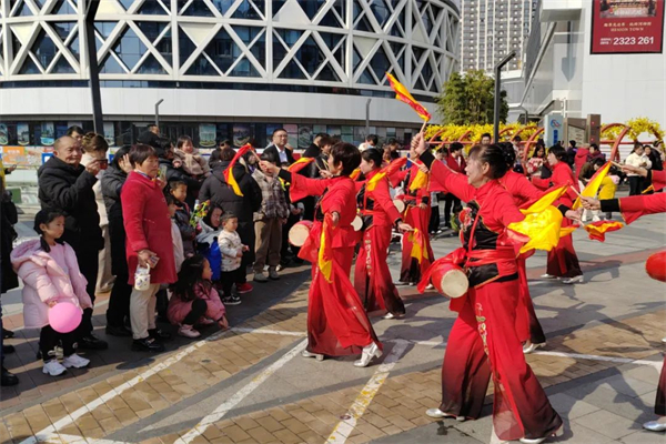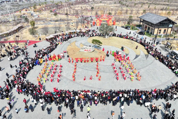 豐收大秧歌、龍騰腰鼓隊(duì)、喜慶蓮響、彩船、花轎大聯(lián)歡、社火、小場子戲等精彩的傳統(tǒng)民俗節(jié)目在桃花源相繼上演。新穎的編排、精彩的表演,令現(xiàn)場游客大飽眼福,叫好聲、喝彩聲此起彼伏。當(dāng)天近25000余名市民游客前往桃花源觀看表演、打卡游園,處處洋溢著“歡歡喜喜過大年”的節(jié)日氣氛。