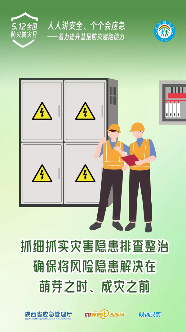 今年5月12日是第16個(gè)全國(guó)防災(zāi)減災(zāi)日,5月11日至17日為防災(zāi)減災(zāi)宣傳周。今年全國(guó)防災(zāi)減災(zāi)日主題為“人人講安全、個(gè)個(gè)會(huì)應(yīng)急——著力提升基層防災(zāi)避險(xiǎn)能力”