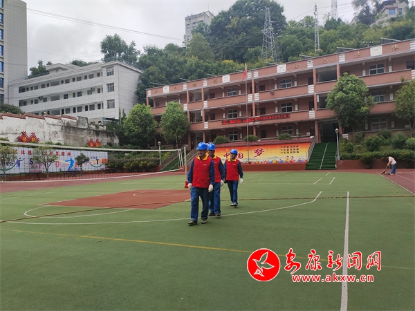 本網(wǎng)訊(通訊員 范財(cái)柱 左士霆) 新學(xué)期即將來臨,為確保返校復(fù)課后學(xué)校師生用電無憂,8月21日,國網(wǎng)白河縣供電公司冷水供電所組織工作人員深入冷水鎮(zhèn)中心小學(xué),對(duì)校內(nèi)用電設(shè)施進(jìn)行全面“體檢”,及時(shí)排除安全風(fēng)險(xiǎn)隱患,用實(shí)際行動(dòng)踐行“雙滿意”。