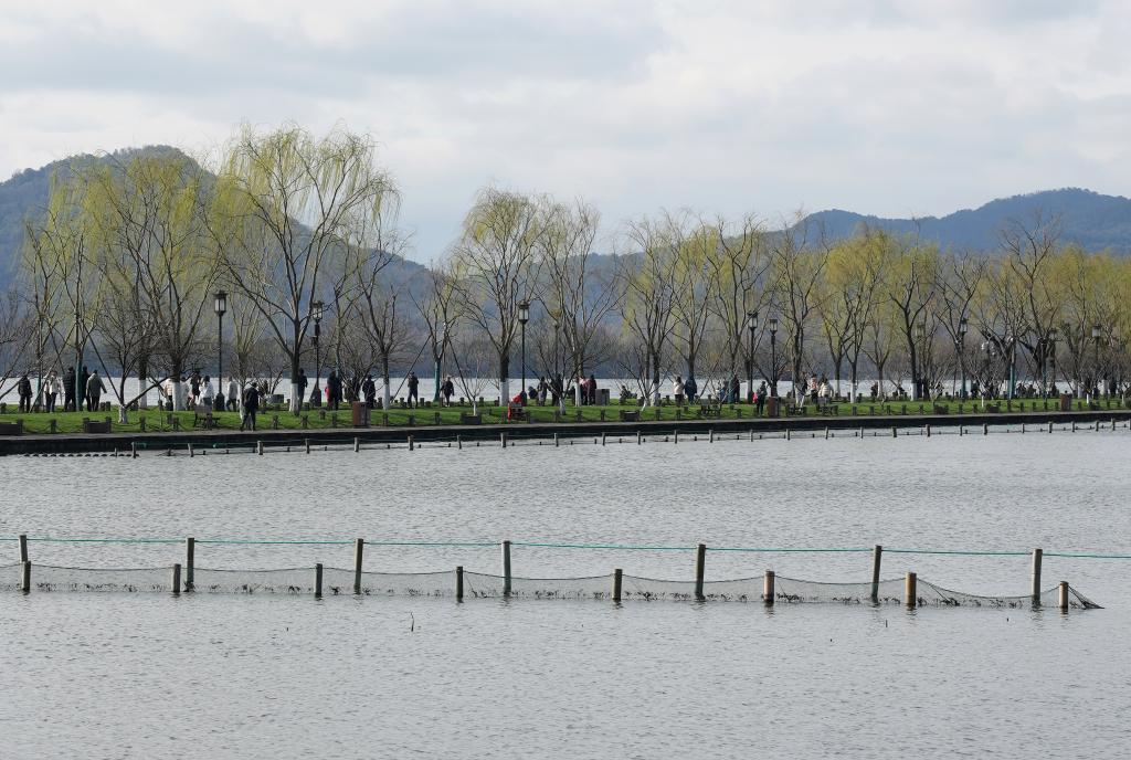 3月4日,游客行走在杭州西湖白堤上。春日,杭州西湖景區(qū)花紅柳綠,一派春光。新華社記者 韓傳號 攝