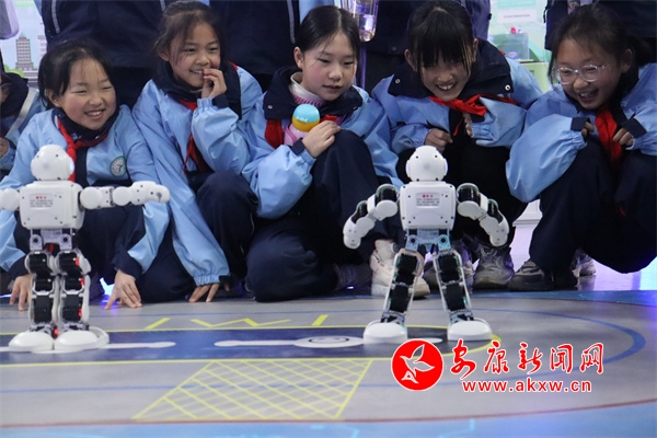 在科技館內(nèi),學生們在講解員的引導下,開啟了“沉浸式”科學之旅,近距離接觸機器人、VR、人工智能等前沿科技展品。智能機器人靈巧的舞蹈動作引得孩子們陣陣歡呼;VR體驗區(qū)里,學生們戴上設(shè)備“穿越”到宇宙星空,感受科技的神奇魅力;學生們還通過參觀“節(jié)水之旅 我們在行動”等主題板塊展品,親手操作實驗設(shè)備,感受到了科技對生活的深刻影響。走進氣象站,學生們跟隨氣象工作人員,參觀了氣象科普長廊,閱覽二十四節(jié)氣對生產(chǎn)生活的影響。在氣象觀測場,近距離觀察風向風速傳感器、天氣現(xiàn)象儀器等設(shè)備。