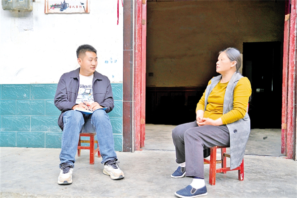 彭方睿入戶進行政策宣傳,并了解興坪村農(nóng)戶收入情況
