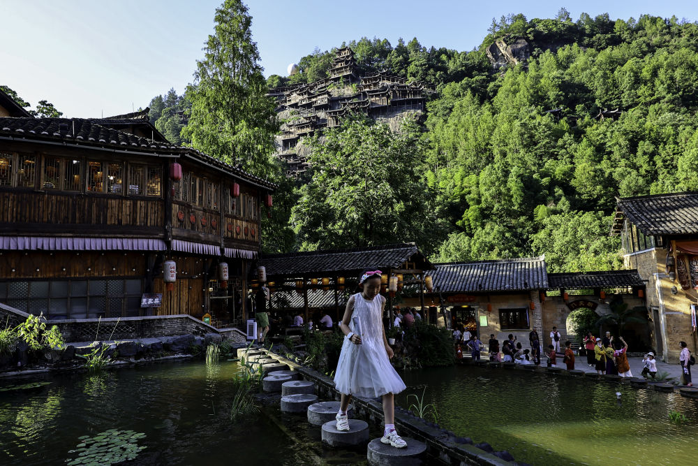 2025年7月11日,游客在位于江西省上饒市望仙鄉(xiāng)的望仙谷景區(qū)游覽。近年來,望仙谷景區(qū)因其獨(dú)特的“仙俠世界”景觀火爆出圈,吸引大批游客來此觀光。景區(qū)2024年接待游客310萬人次,全年實(shí)現(xiàn)旅游收入5.28億元,同時(shí)顯著帶動(dòng)周邊鄉(xiāng)鎮(zhèn)的食、住、行、娛等行業(yè)發(fā)展。望仙谷景區(qū)的建設(shè)運(yùn)營促進(jìn)了村民返鄉(xiāng)和能人進(jìn)鄉(xiāng),提供直接就業(yè)崗位超過2000個(gè),帶動(dòng)周邊就業(yè)3萬余人。