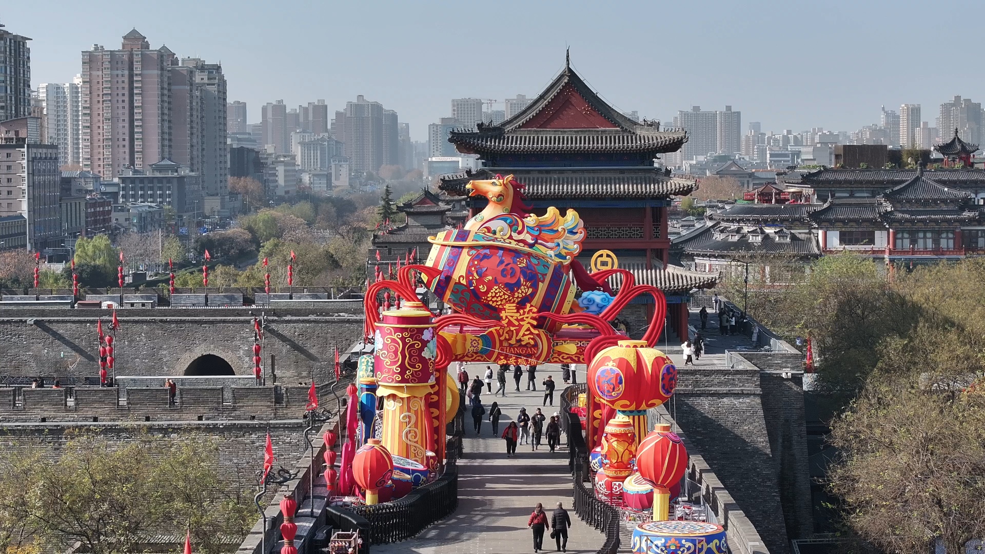 2026“長(zhǎng)安燈會(huì)·西安城墻”花燈已初步搭建(央廣網(wǎng)記者 侯凱奇 攝)