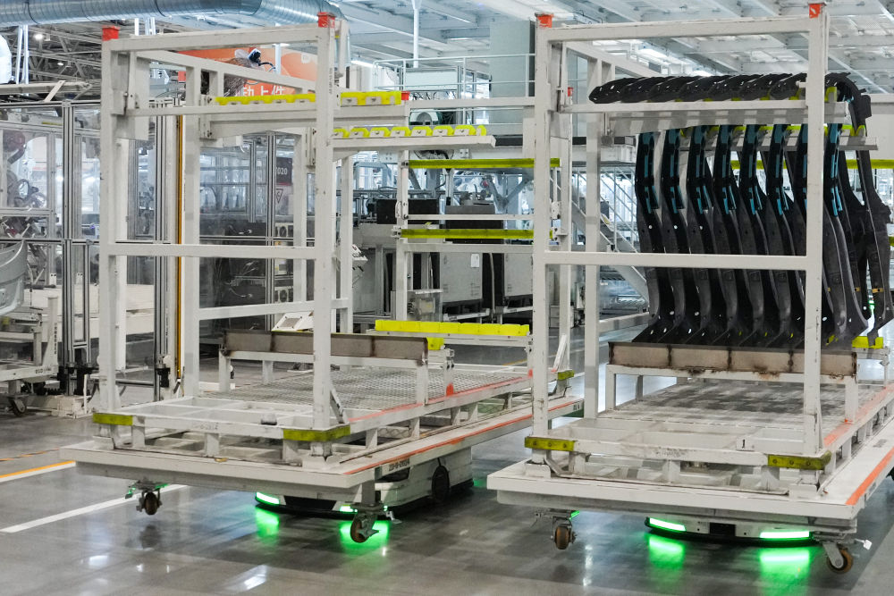 從研發(fā)制造到測(cè)試應(yīng)用,北京發(fā)揮汽車(chē)產(chǎn)業(yè)長(zhǎng)期積累,積極擁抱新品牌、新技術(shù),新模式,新能源汽車(chē)產(chǎn)業(yè)蓬勃發(fā)展,產(chǎn)業(yè)鏈供應(yīng)鏈不斷鞏固完善。這是自主移動(dòng)機(jī)器人在北京小米汽車(chē)工廠(chǎng)搬運(yùn)物資(2025年6月16日攝)。