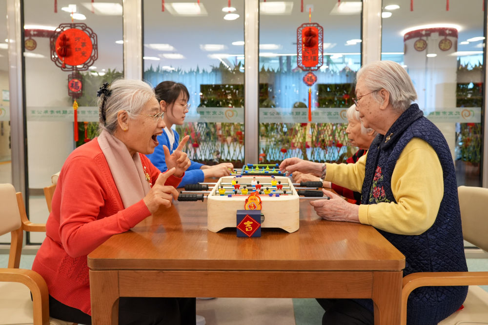 2月10日,社區(qū)內(nèi)老年人玩益智游戲。
