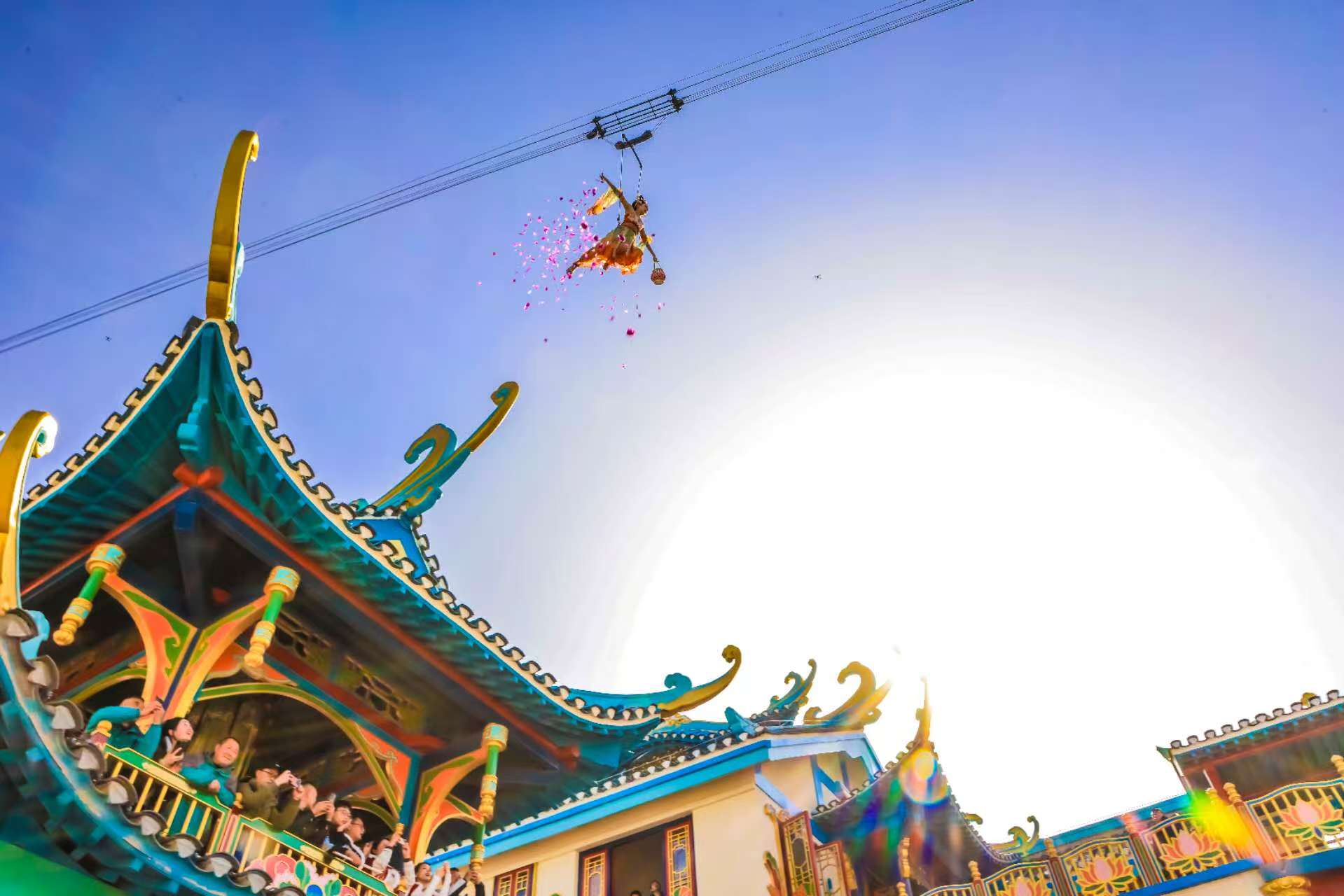 春節(jié)期間,瀛湖漢水街文旅影視基地?zé)狒[非凡。圖為游客們欣賞基地精心準備的表演。張忠 攝
