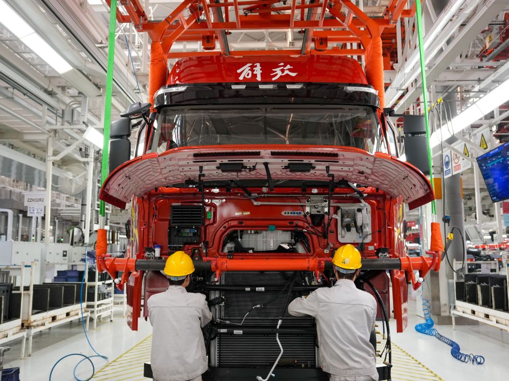 ??2026年1月4日,工人在位于吉林省長(zhǎng)春市的一汽解放J7整車智能工廠裝配車輛。新華社記者 張楠 攝