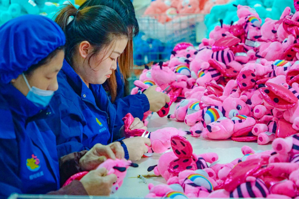 毛絨玩具是安康特色產(chǎn)業(yè)體系中的另一個(gè)重要代表。很多人可能不知道,目前安康已發(fā)展成為全國(guó)第四大毛絨玩具生產(chǎn)基地,獲評(píng)“中國(guó)毛絨玩具產(chǎn)業(yè)新都”。截至2025年底,安康全市累計(jì)建成毛絨玩具和紡織企業(yè)811家(點(diǎn)),吸納就業(yè)群眾超2.2萬人,實(shí)現(xiàn)年產(chǎn)值100.21億元。企業(yè)日產(chǎn)能達(dá)到150萬只,產(chǎn)品出口全球80多個(gè)國(guó)家和地區(qū)。